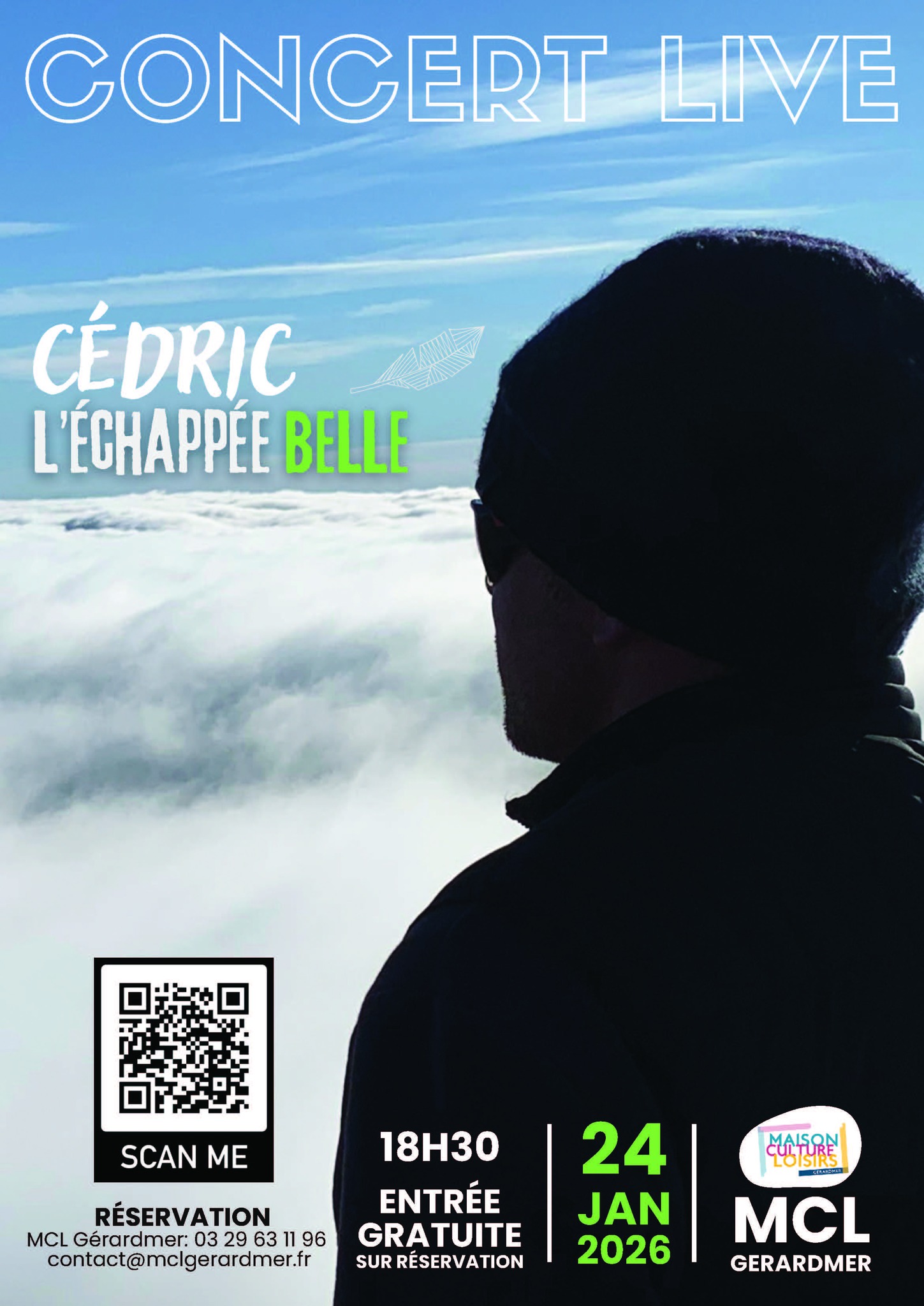 À l’occasion de la sortie de son premier album intitulé « L’Échappée belle », Cédric vous donne rendez-vous à la MCL de Gérardmer pour une soirée musicale toute en sensibilité et en partage. Porté par les sonorités chaleureuses de la guitare et du violoncelle, il livrera ses chansons à cœur ouvert, entre poésie, sincérité et émotions vraies. Un moment unique, marqué par la complicité d’un duo touchant avec sa fille Elsa, pour célébrer la musique et la beauté d’une échappée hors du temps.